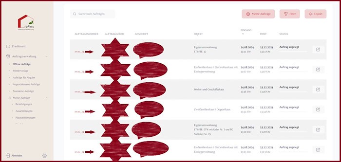 Das neue Auftragsportal von reVex ist mehr als nur eine digitale Lösung – es ist ein umfassendes Instrument, das Immobiliengutachtern und ihren Partnern zu mehr Transparenz, Effizienz und Sicherheit im Tagesgeschäft verhilft. Mit maßgeschneiderten Schnittstellen, automatisierten Abläufen und einem klaren Fokus auf Compliance setzen wir neue Maßstäbe in der Branche.